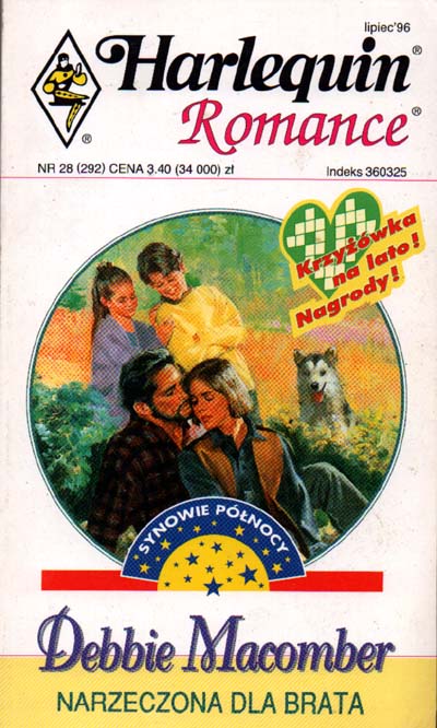 Narzeczona dla brata / Debbie Macomber ; [przekł. z ang. Janusz Węgiełek]. - Toronto ; Warszawa [etc.] : "Arlekin" - Wydaw. Harlequin Enterprises, 1996 ([Berlin] : "Elsnerdruck"). - 155 s. ; 18 cm.