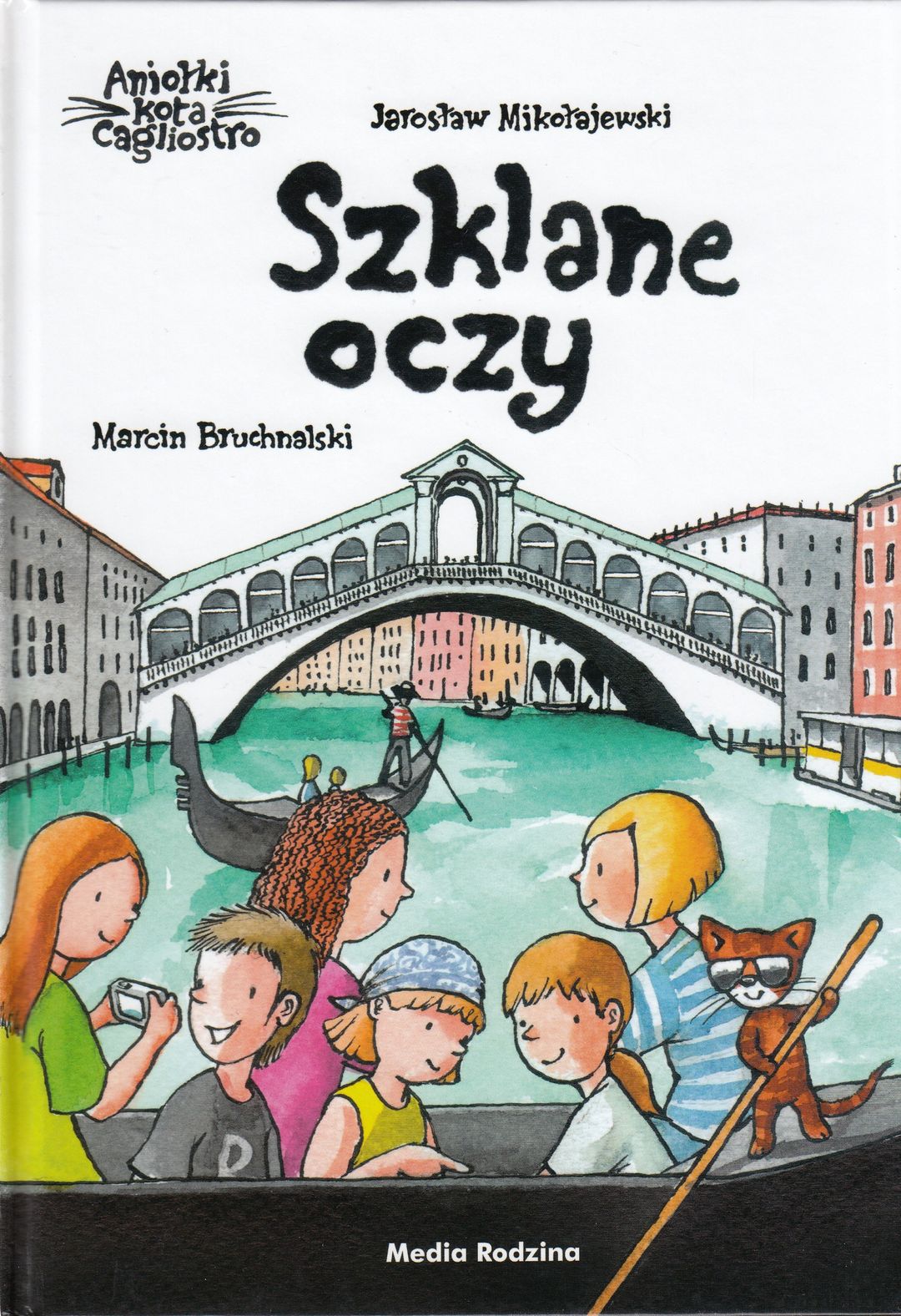 Kolejna książeczka z kotem Cagliostro i jego aniołkami w roli głównej. Dziewczynki, które przeżyły już wspólne przygody w Rzymie, w niedzielę o poranku muszą się znaleźć na wezwanie swojego rudego przewodnika w Wenecji. Koci czas płynie zupełnie inaczej niż czas rzeczywisty. Wszyscy wsiadają do gondoli, by rozwiązać kolejną zagadkę. Tym razem ich zadanie ma na imię Britta i jest sześcioletnią dziewczynką, o której zapomnieli rodzice, robiąc sobie zdjęcia na pięknym moście Rialto. Co zobaczą w tym mieście, gdzie tak dobrze skryć się pod wenecką karnawałową maską? Kto wie, jakie jeszcze czekają na nie zagadki. Jakie miasta... Jakie wspólne przygody...